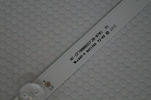 The BACK LIGHT RF-CF700002CF30-0701 A1 LED STRIP C TYPE is a replacement part specifically designed for the 70″ Vestel VES700QNTT-02-Z02 TV model. Manufactured in Türkiye, this unit is guaranteed by the manufacturer for one month and is compatible with other brands such as Hitachi, JVC, Toshiba, and Nordmende. This LED strip backlight is essential for ensuring optimal brightness and contrast on your TV, providing a seamless viewing experience.