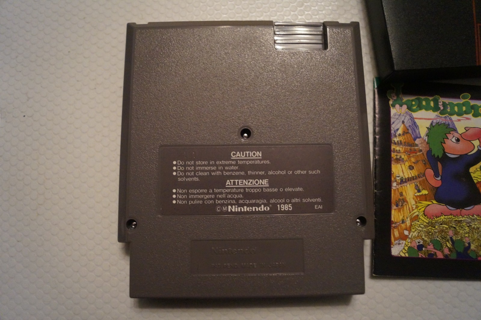 The product is a genuine working Lemmings game cartridge and sleeve for the Nintendo NES console, specifically made for the PAL region. Released in 1985 by Nintendo, this action and adventure game is suitable for all ages with an E rating. The package includes a manual and has a manufacturer warranty of 1 month, ensuring a quality product. Made in Japan, this classic game provides hours of entertainment for fans of the Lemmings franchise on the NES platform.