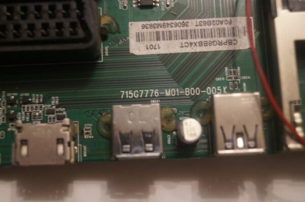 The 50PUS7855/12 Main Board 715G7776-M01-B00-005K is a replacement part specifically designed for a 49″ Philips TV, model 49PUS6401/12 . Manufactured in 2017, this unit is a genuine Philips product with a manufacturer warranty of 1 month. It is a main board, essential for the proper functioning of the TV, and is compatible with the mentioned model. This main board is a crucial component for maintaining and repairing your Philips TV, ensuring optimal performance and longevity.